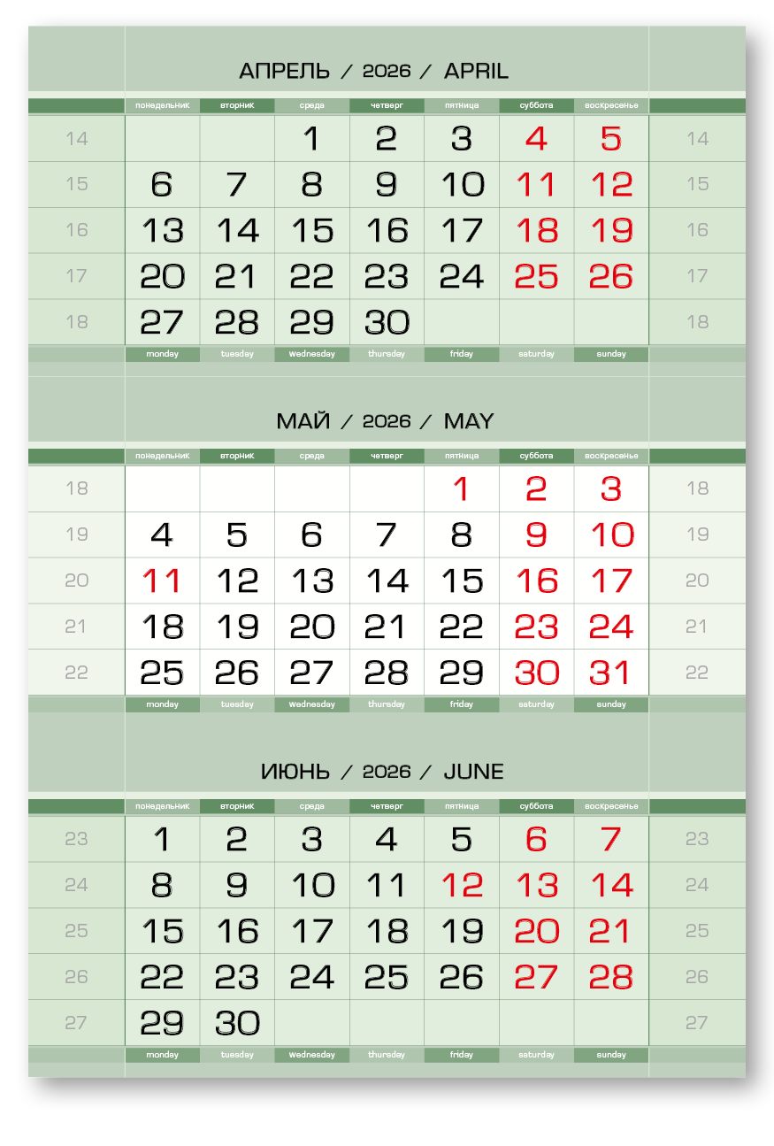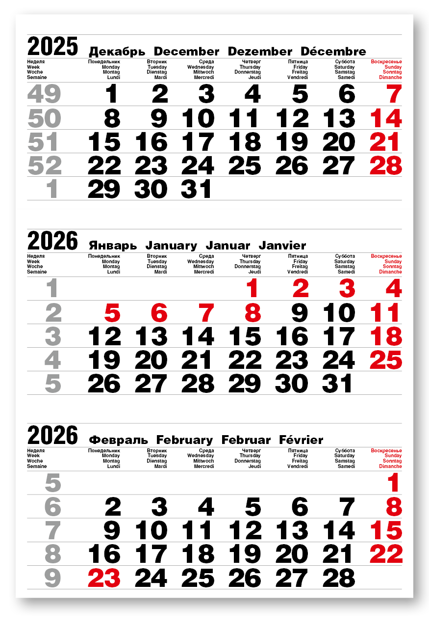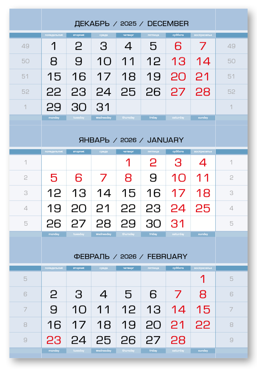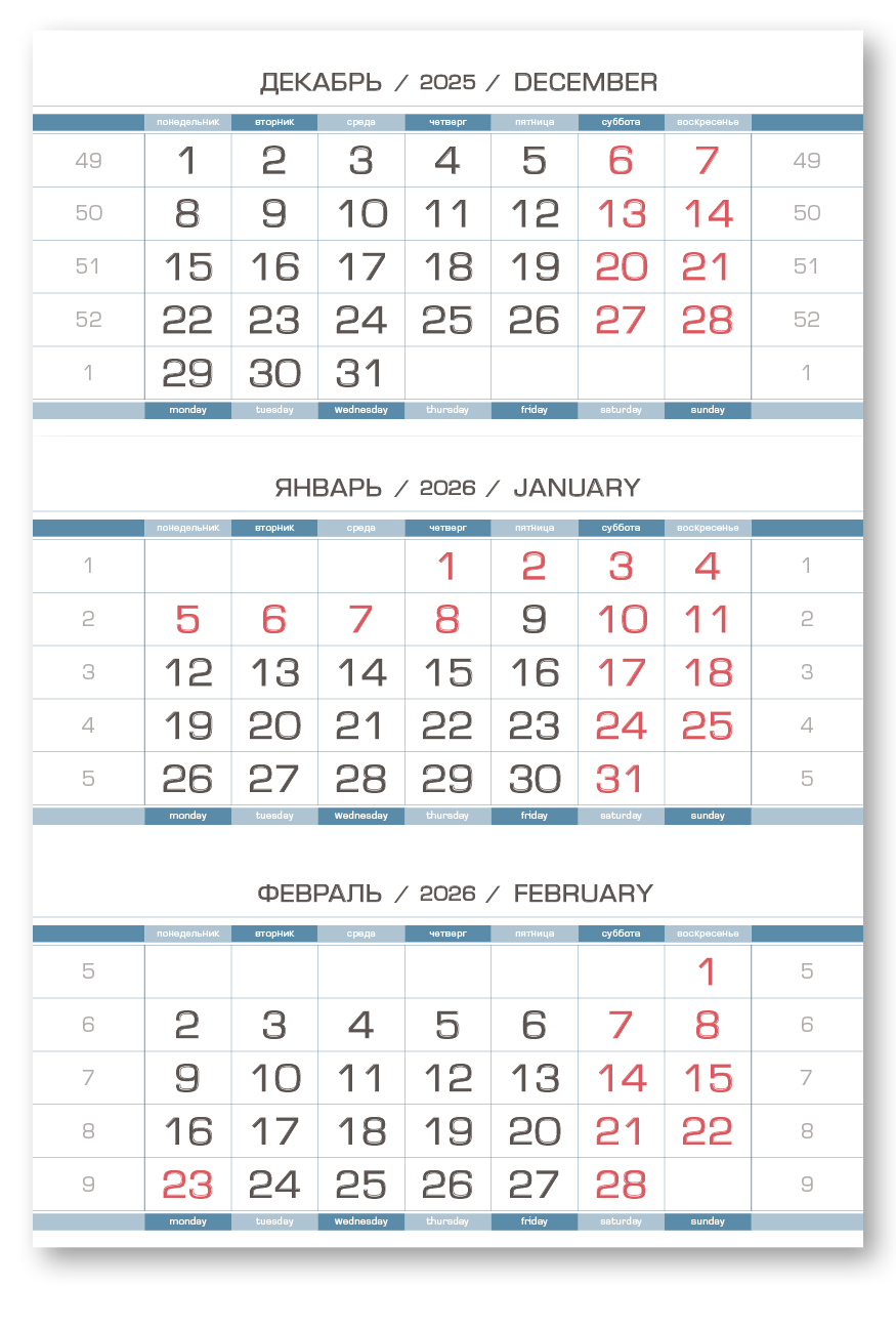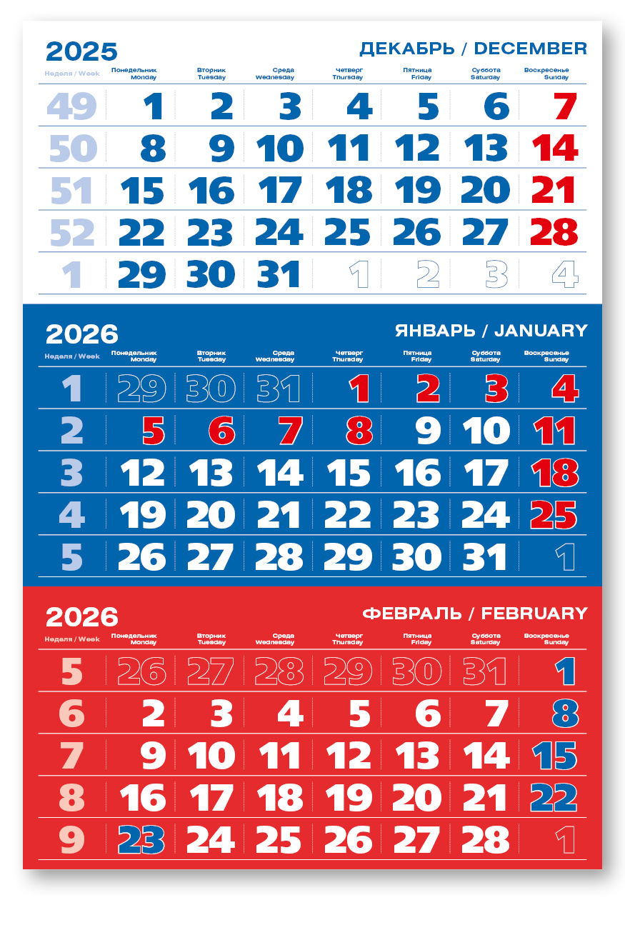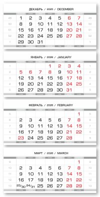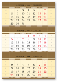 Мы производим квартальные календари на собственном производстве в Пушкине. Наши календари выгодно отличаются ламинированным глянцевой или матовой пленкой шпигелем (шапкой), уникальными календарными блоками, ярким запоминающимся дизайном, а главное — ценой.