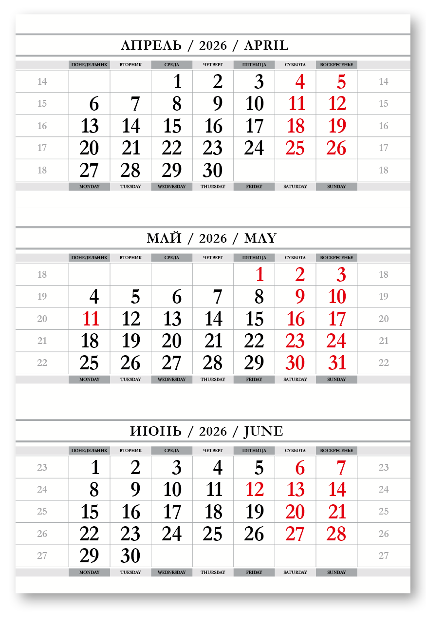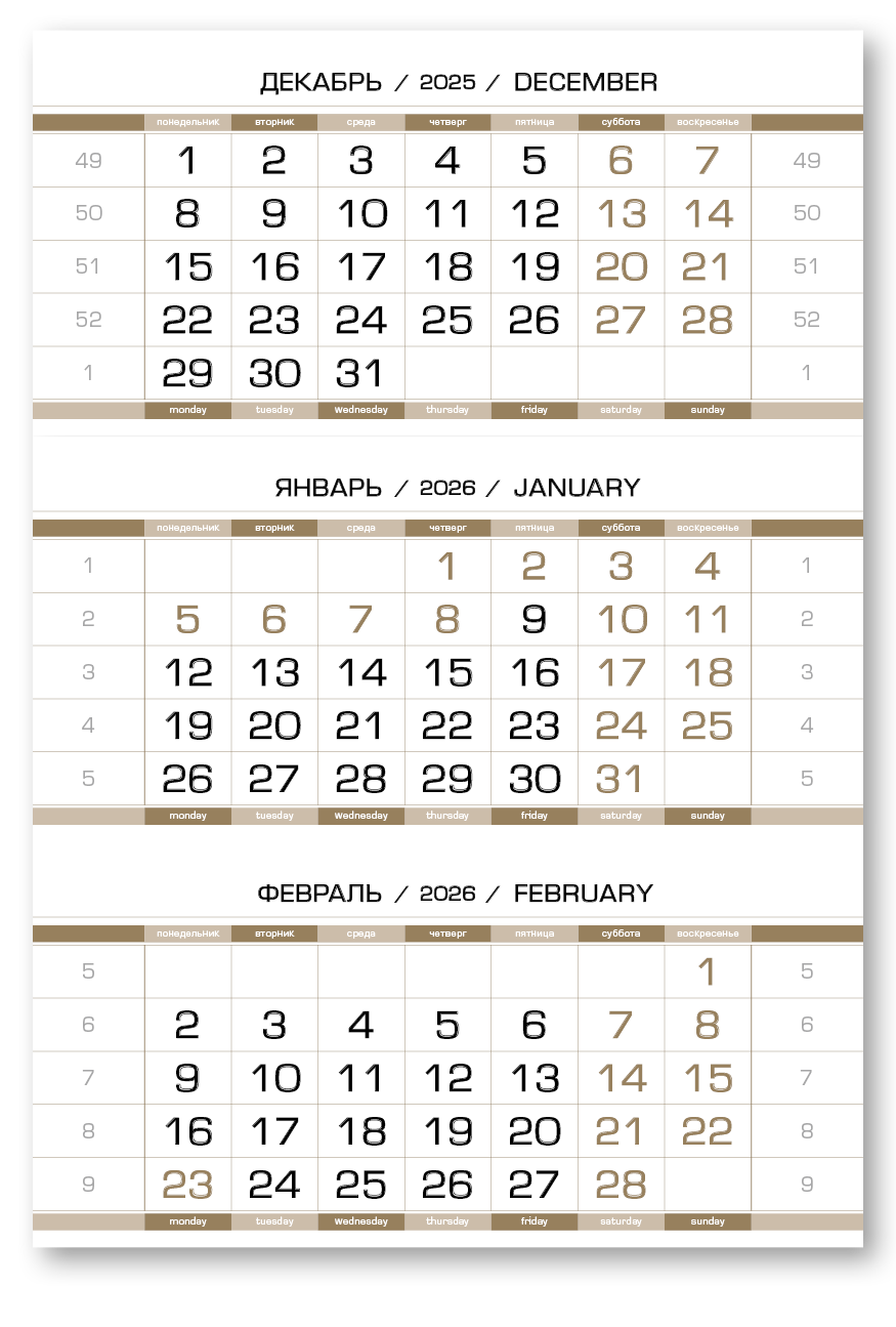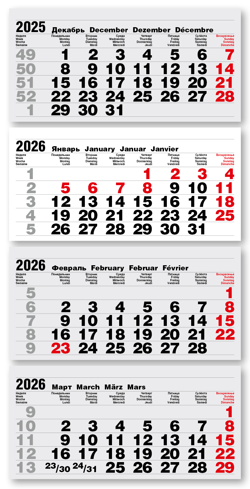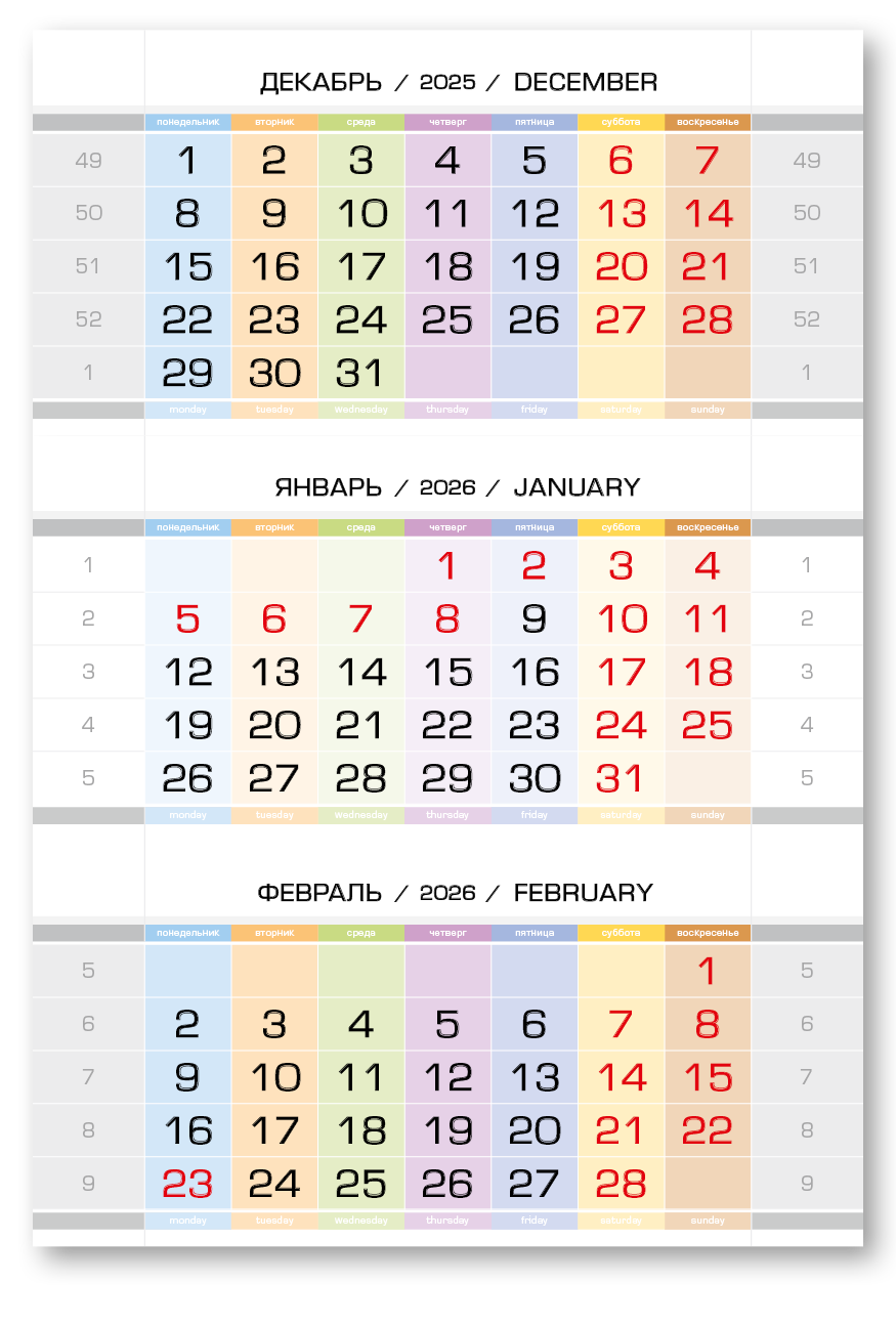 Мы производим квартальные календари на собственном производстве в Пушкине. Наши календари выгодно отличаются ламинированным глянцевой или матовой пленкой шпигелем (шапкой), уникальными календарными блоками, ярким запоминающимся дизайном, а главное — ценой.