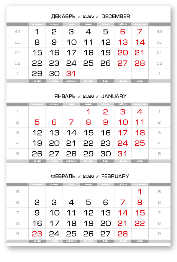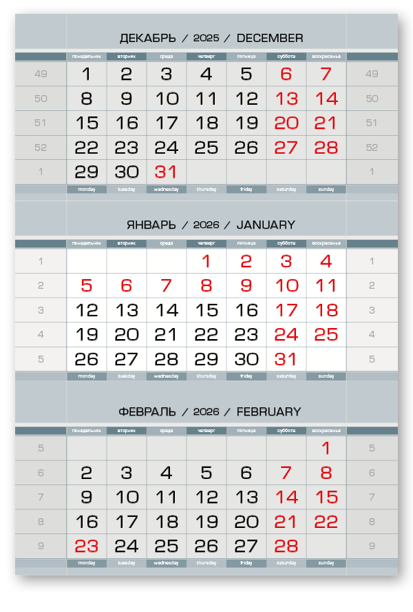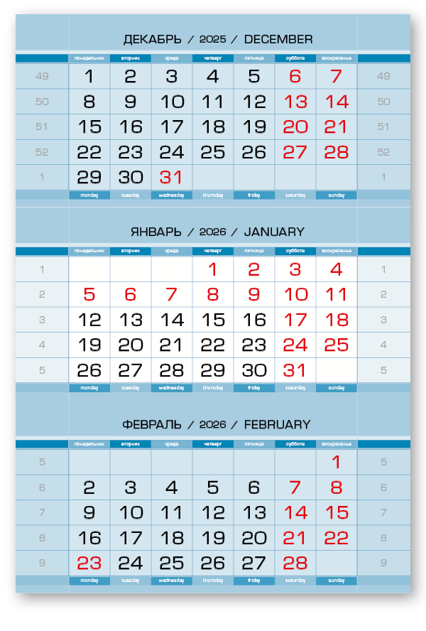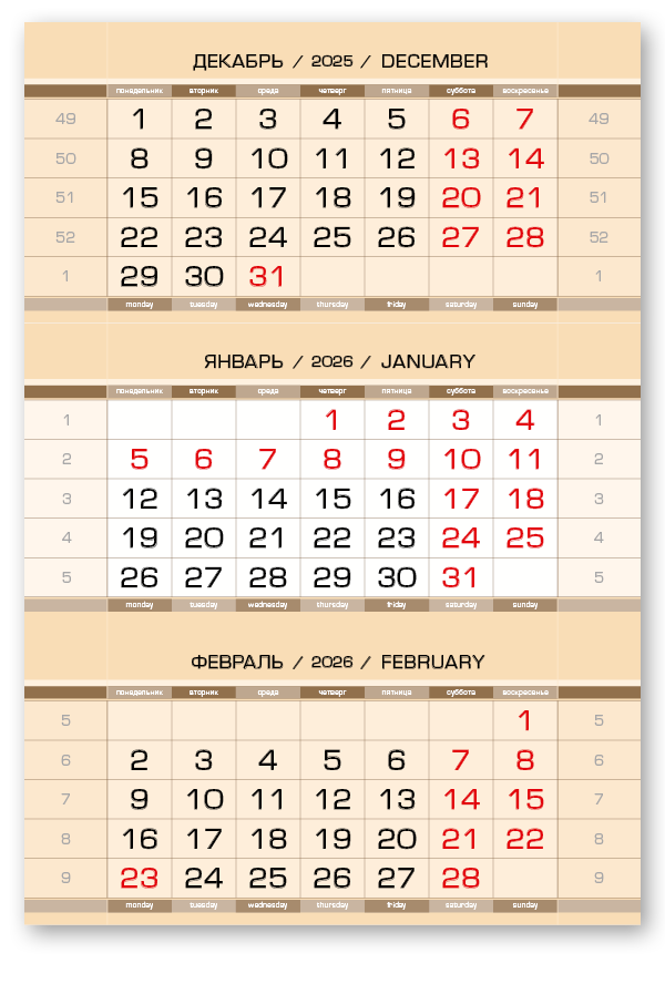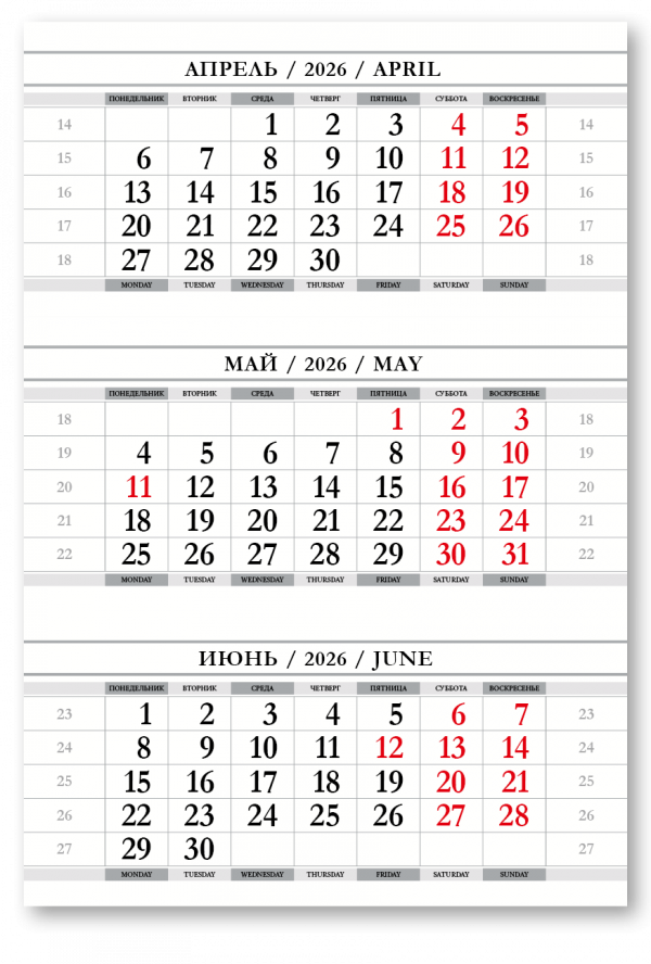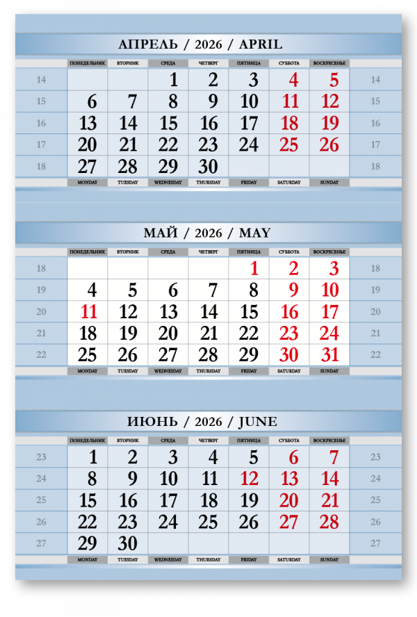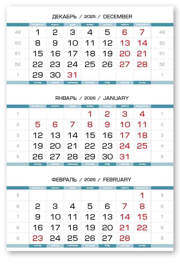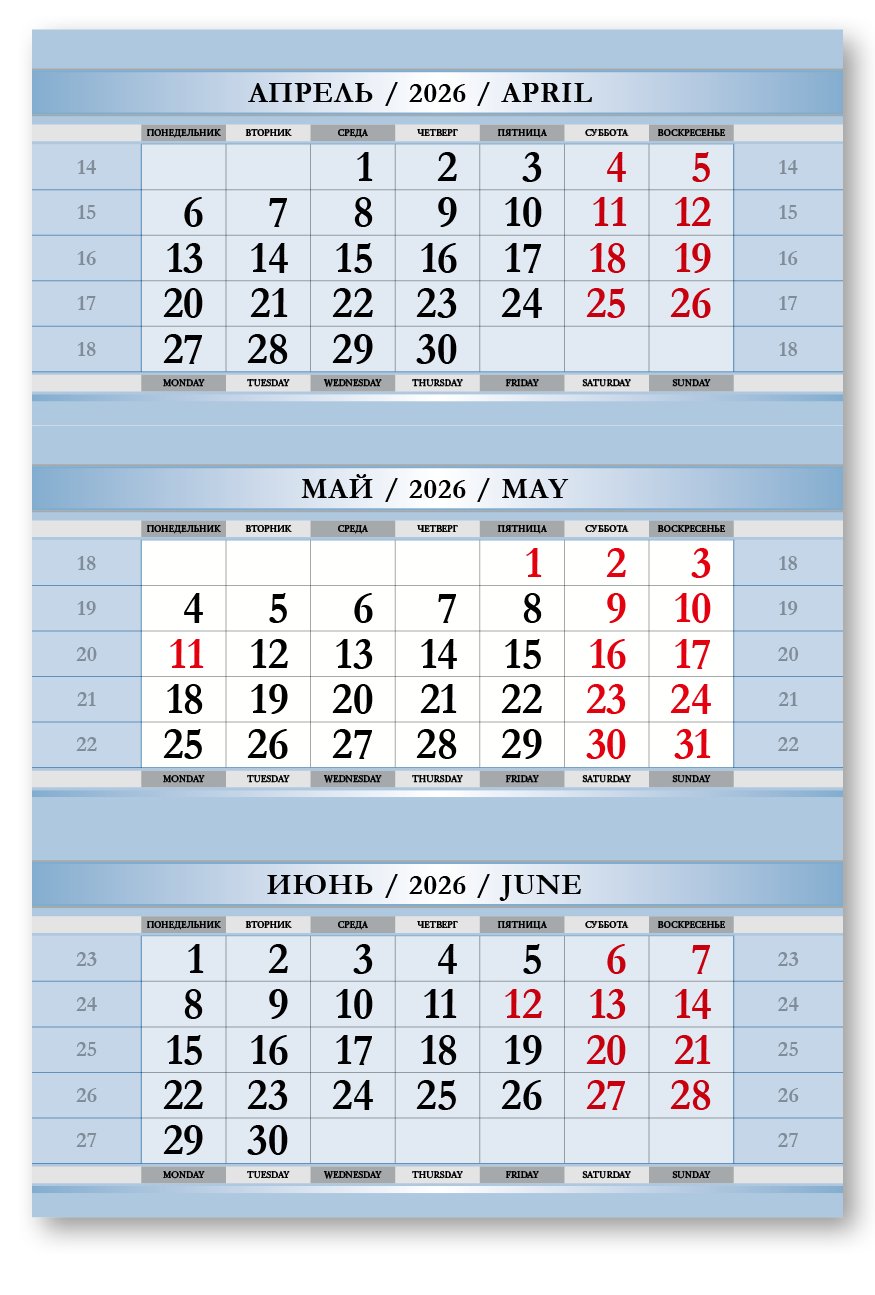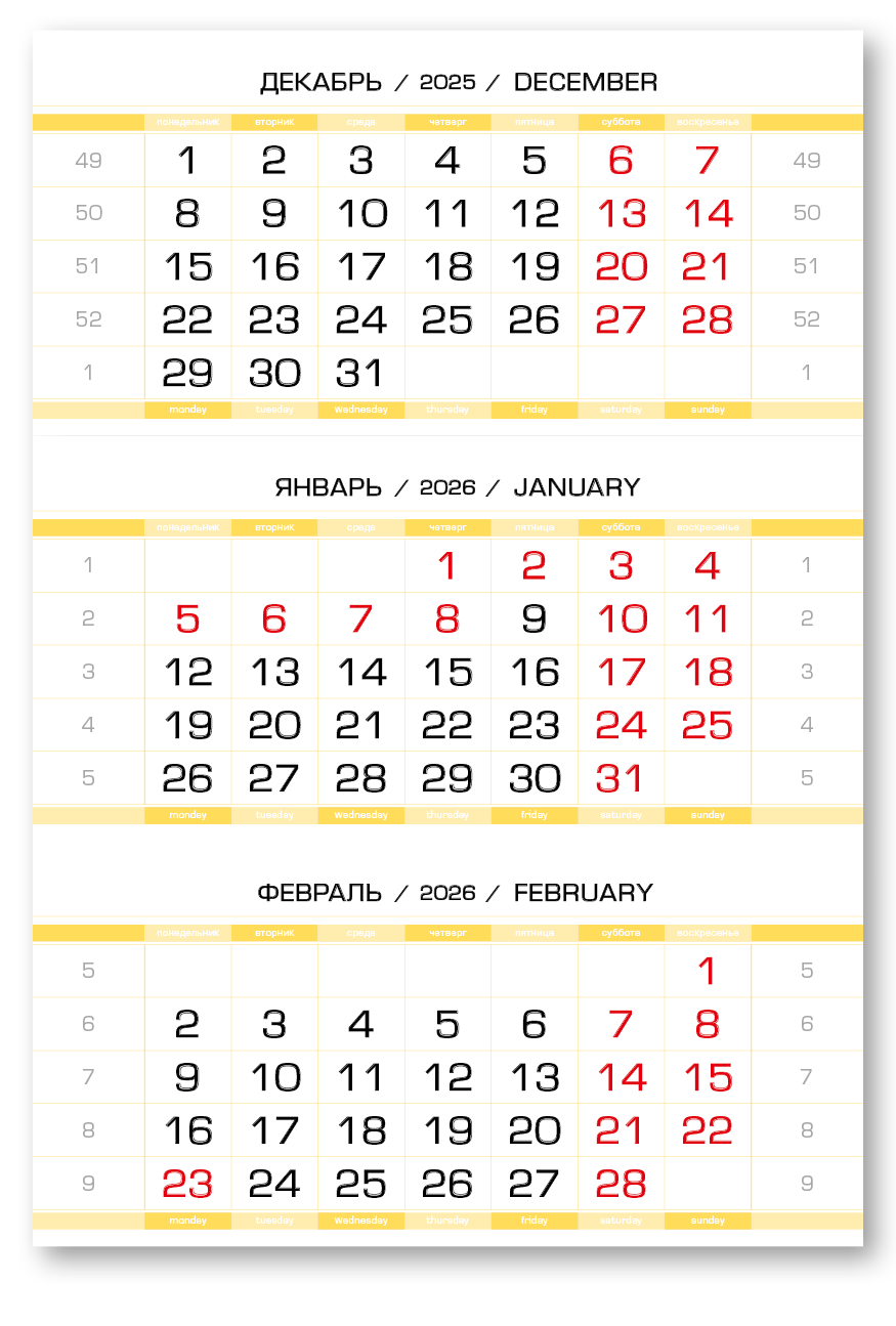 Мы производим квартальные календари на собственном производстве в Пушкине. Наши календари выгодно отличаются ламинированным глянцевой или матовой пленкой шпигелем (шапкой), уникальными календарными блоками, ярким запоминающимся дизайном, а главное — ценой.